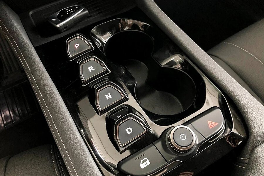 Cần số dạng nút bấm. Thiết kế bệ tỳ tay kích thước lớn có thể trở thành bàn làm việc khi cần. Hệ thống đèn viền nội thất mang đến cảm giác dễ chịu cho người ngồi đồng thời giúp tăng thêm tính sang trọng cho xe.