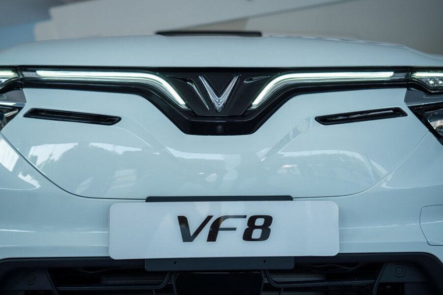 Thiết kế mặt ca-lăng của VinFast VF8 liền mạch với thân xe, đặc điểm chung của đa số các mẫu xe điện hiện hành. Hệ thống chiếu sáng trên VF8 sử dụng công nghệ LED hiện đại.