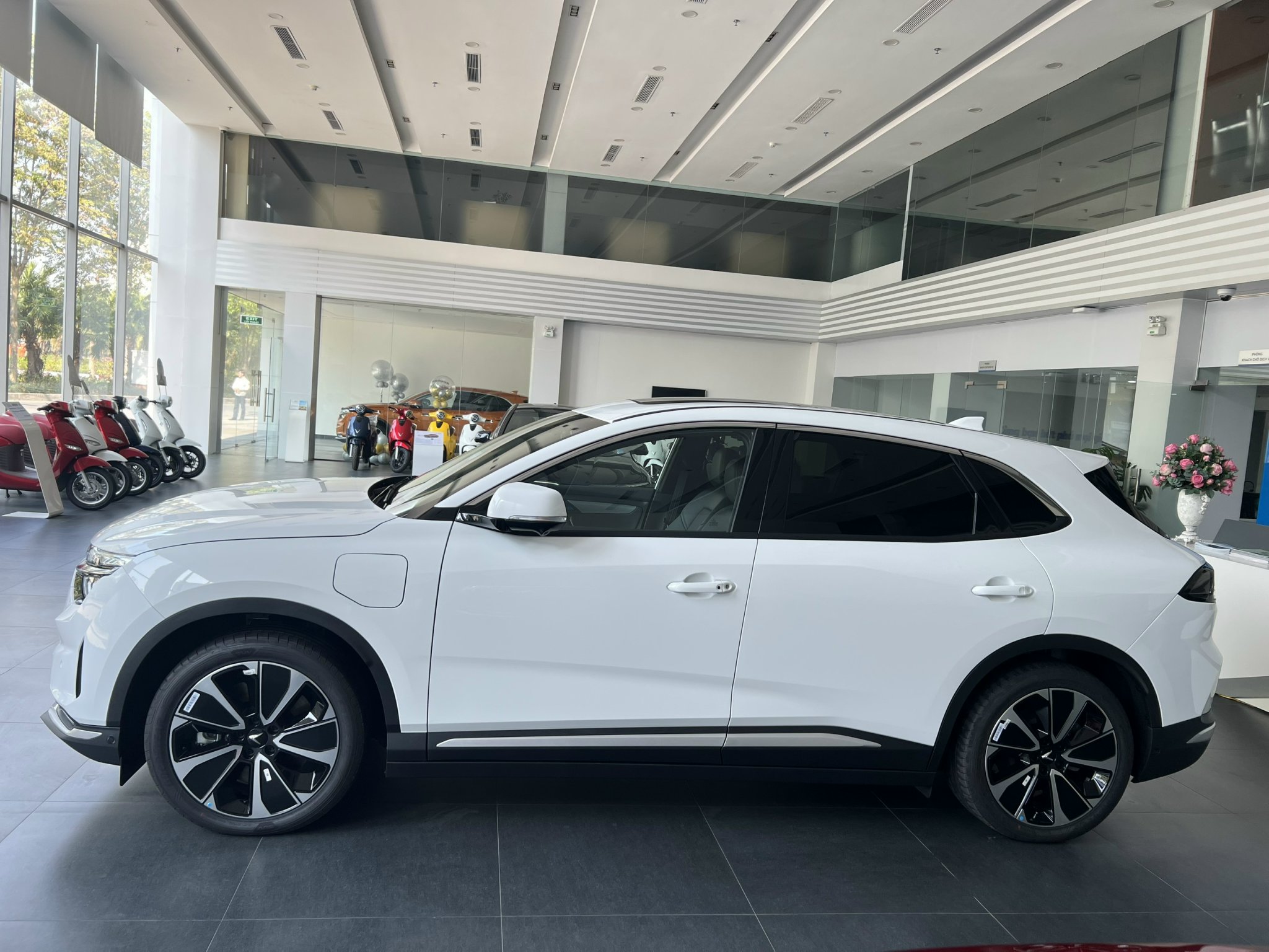 Tiến tới phần thân xe VinFast VF8 tạo nên sự đồng bộ lớn khi tay nắm cửa, đèn hậu cùng màu với tổng thể thân xe. Các chi tiết mạ crom như vè cửa kính, bệ bước chân trở thành chi tiết điểm tô giúp mẫu SUV điện Việt thêm phần sang trọng.